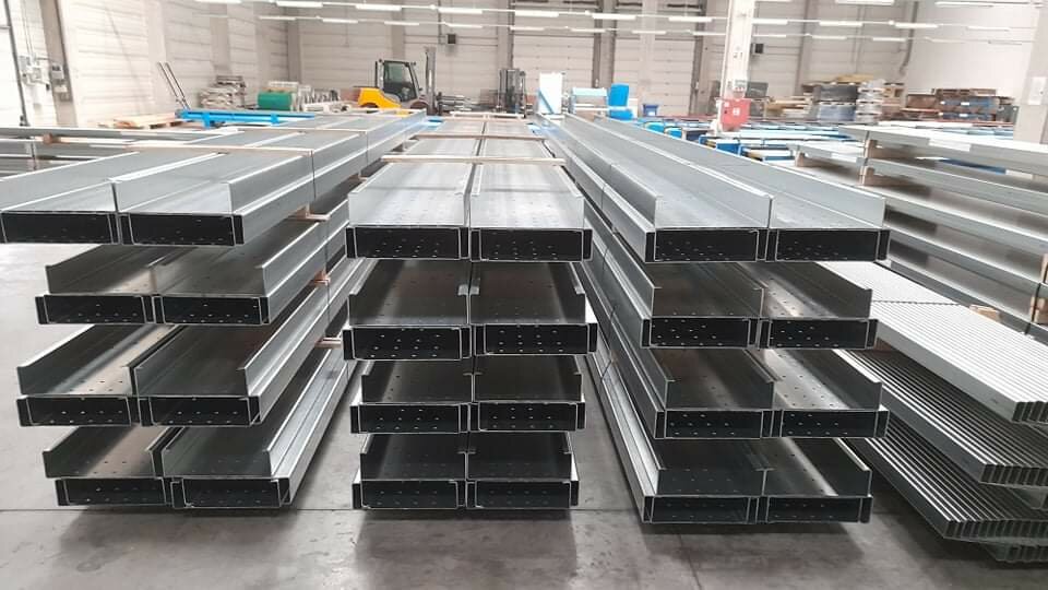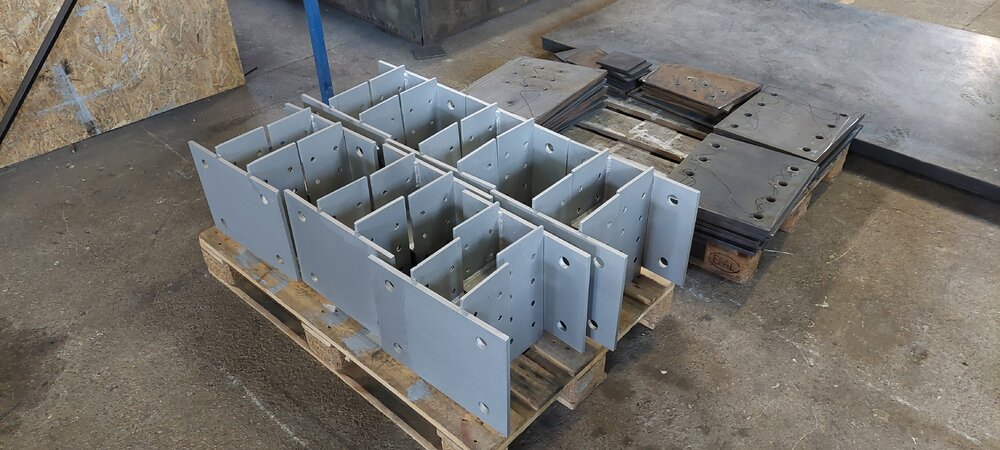 Az összekötő elemekt a műhelyben állítjuk össze. Ezeket plazma CNC technológiával vágjuk és furatokjuk. Ezután MIG hegesztéssel összeállítjuk, német horganyfestékkel kezeljük.